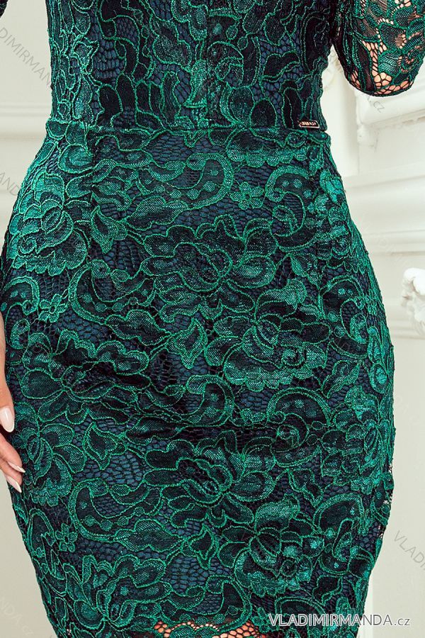 Lace dress with neckline and long sleeves - green. Classic and elegant. Polish production. Numoco