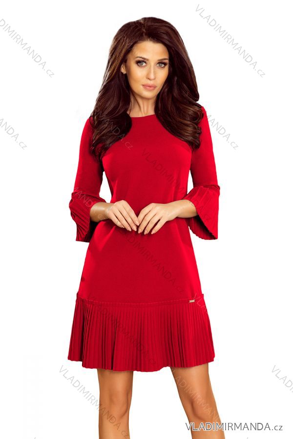 LUCY - a beautiful red dress with pleats. The numoco brand. Material: 95% Polyester, 5% Elastane