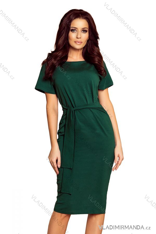 Vera - midi dress with short sleeves and waist binding. Very comfortable. Made of elastic cotton. Polish product. The numoco brand.