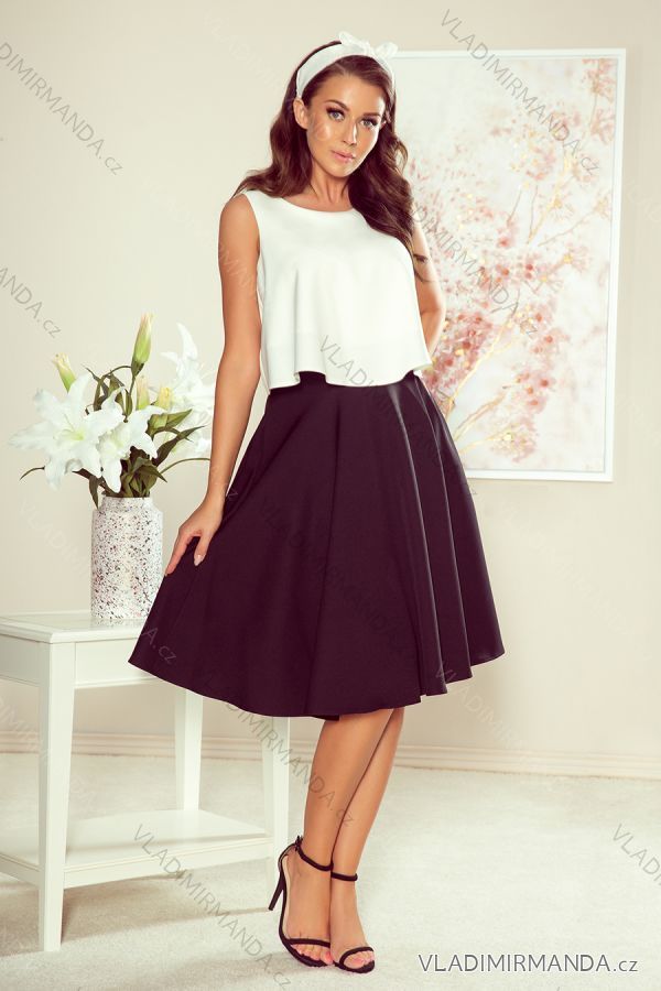 Flared black midi skirt with pockets. Made of pleasant to the touch, smooth material (95% polyester, 5% elastane). Fastened back to the zipper. A blouse from the set is available for purchase separately. Brand ---