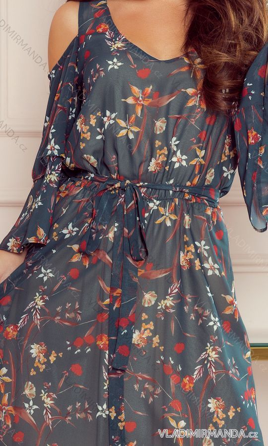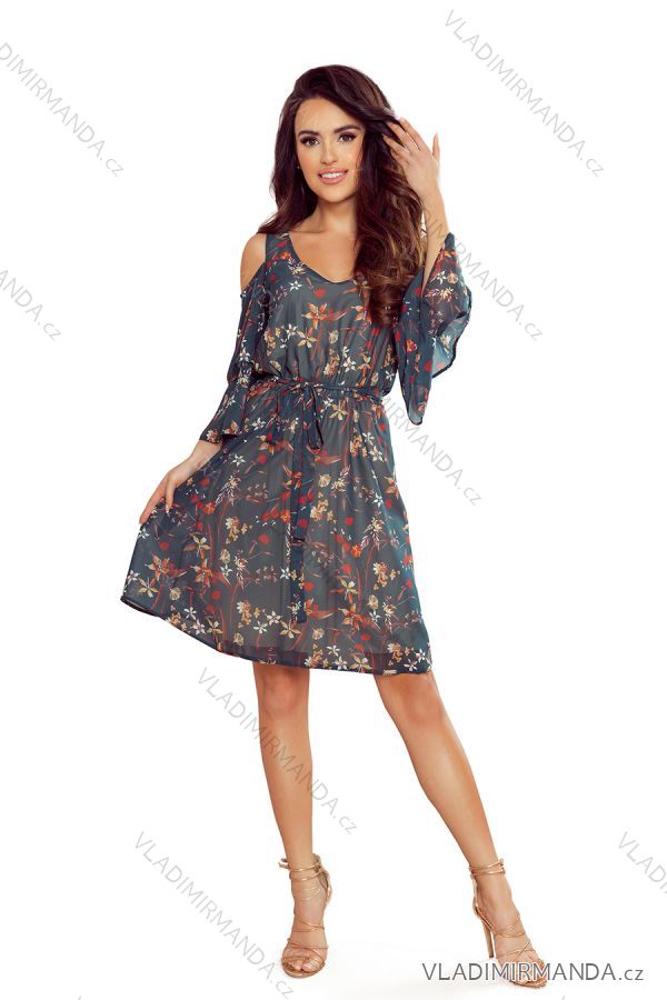 GOODS (120476) > Women's elegant fashion (5696) > Dress-skirts-overalls (3111) > 292-2 MARINA Flimsy Dress with a Neckline - Green with Flowers