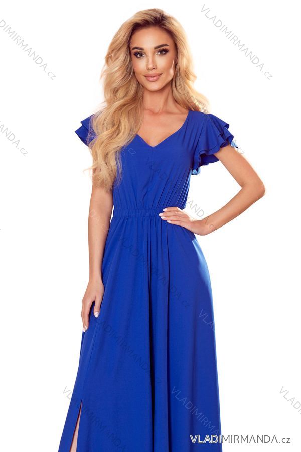 310-3 LIDIA long dress with neckline and frills - Royal Blue