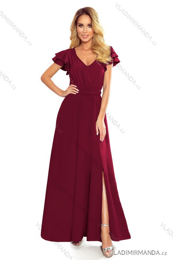 310-5 LIDIA long dress with a neckline and frills - burgundy color