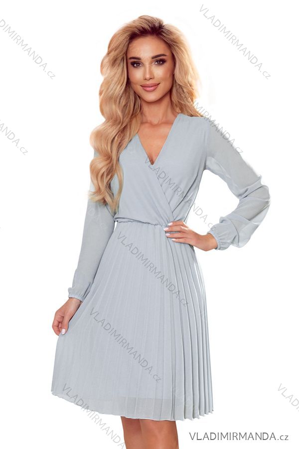 GOODS (120768) > Women's clothing (82128) > dress (31068) > dress elegant (8567) > Elegant long sleeve dress (4218) > 313-11 ISABELLE Pleated dress with neckline and long sleeve - grey