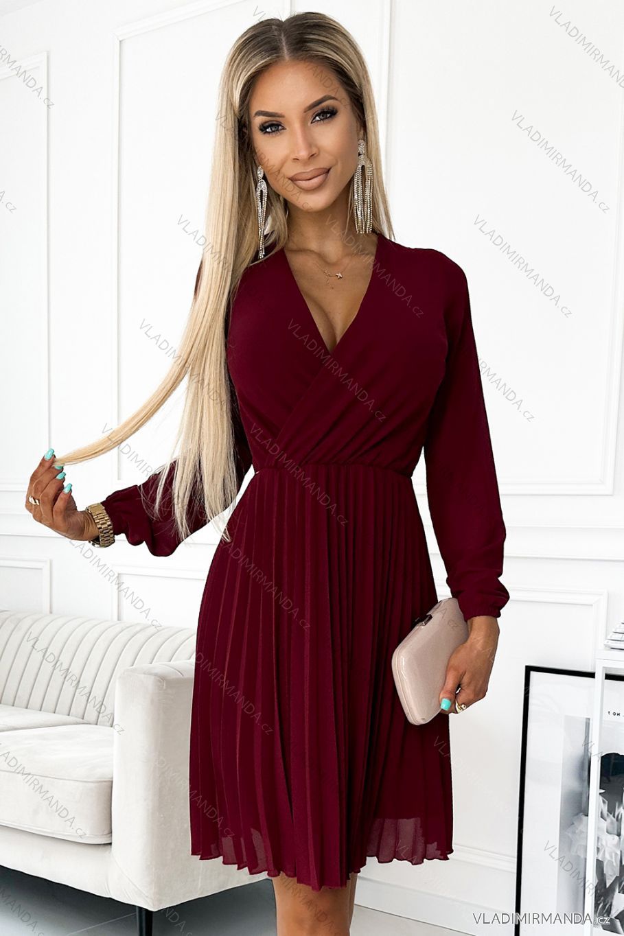 GOODS (120678) > Women's clothing (82128) > dress (31066) > dress elegant (8566) > Elegant long sleeve dress (4217) > 313-15 ISABELLE Pleated dress with neckline and long sleeve - Burgundy color