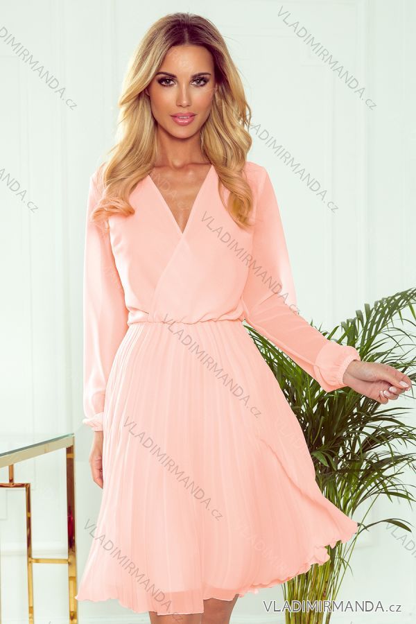 GOODS (119105) > Women's elegant fashion (5692) > Dress-skirts-overalls (3114) > 313-2 ISABELLE Pleated dress with neckline and long sleeve - peach color