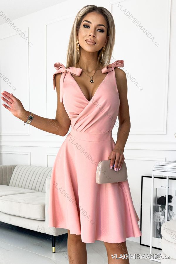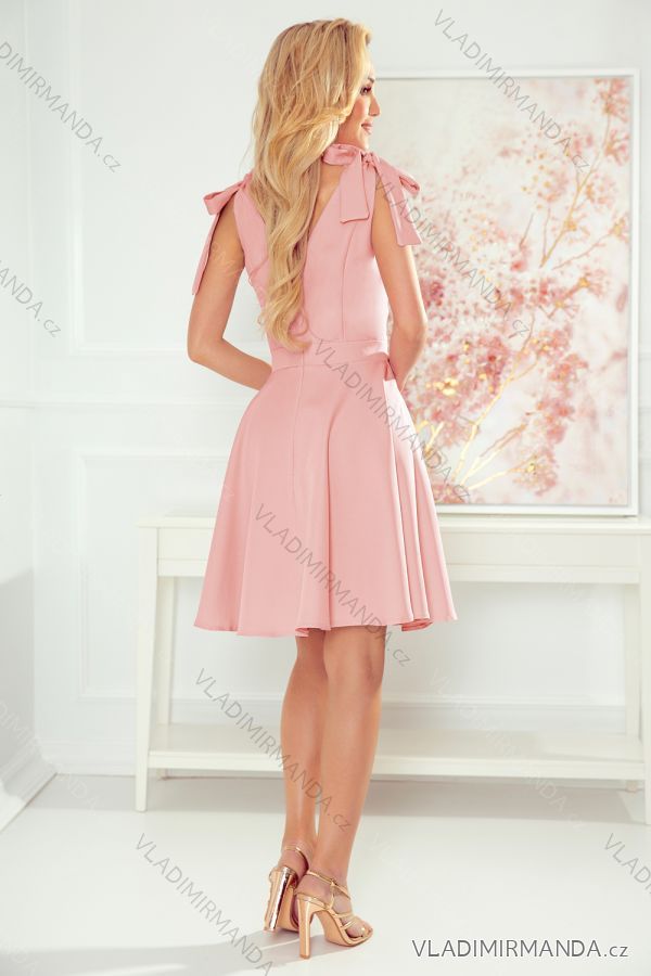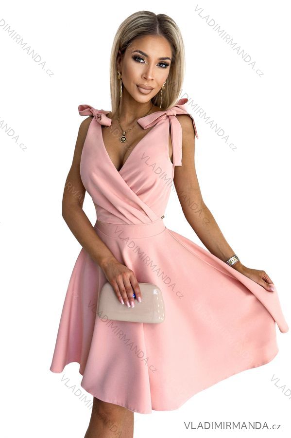 GOODS (120363) > Women's clothing (81477) > dress (30627) > Social dress (5000) > Ball gown short (1328) > 393-2 ROSALIA Feminine dress with an envelope neckline and bows - powder pink