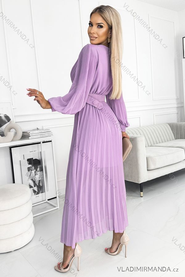 GOODS (125322) > Women's clothing (81949) > dress (30936) > Social dress (4590) > Ball gown long (2912) > 414-6 KLARA pleated dress with a belt and a neckline - lilac color