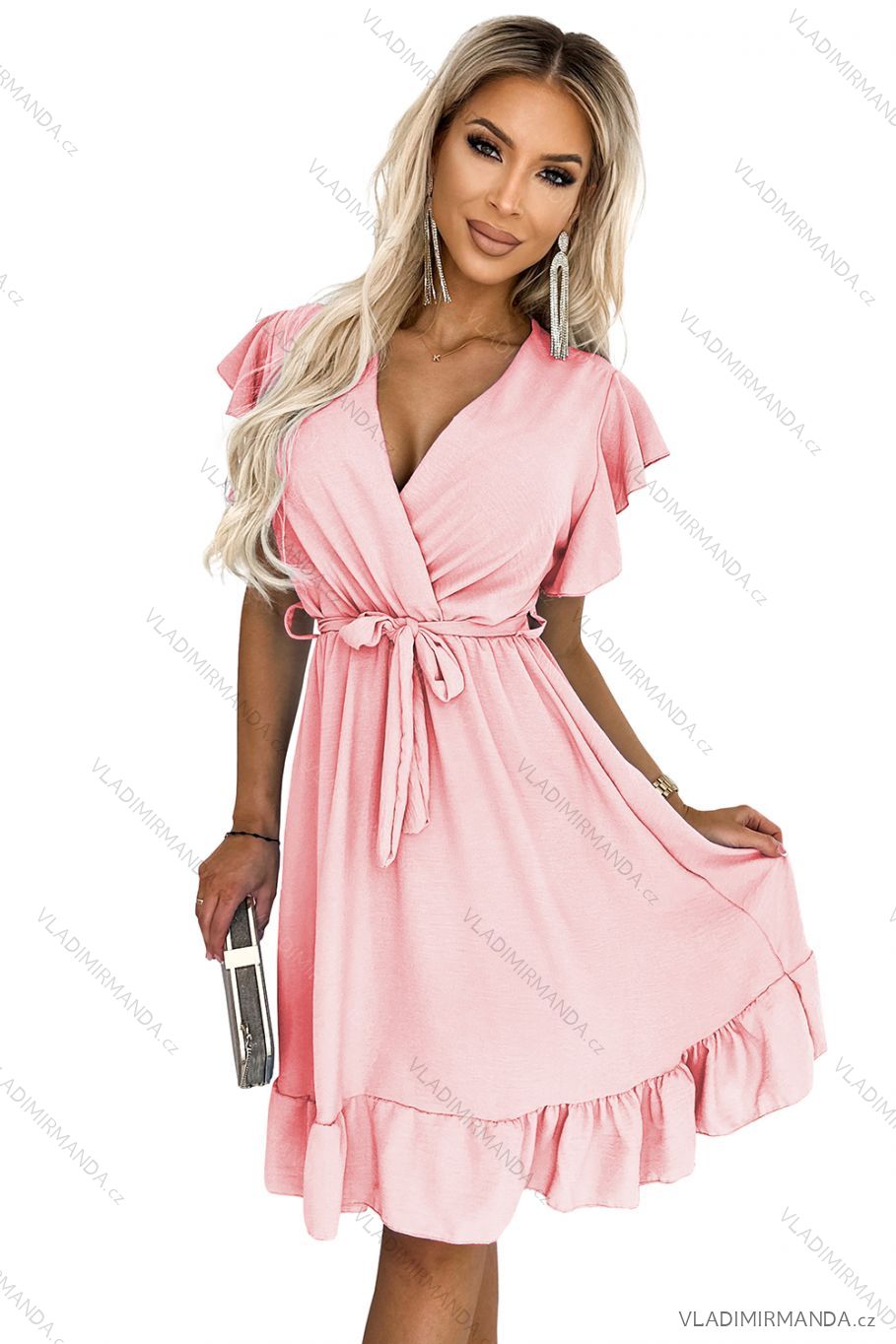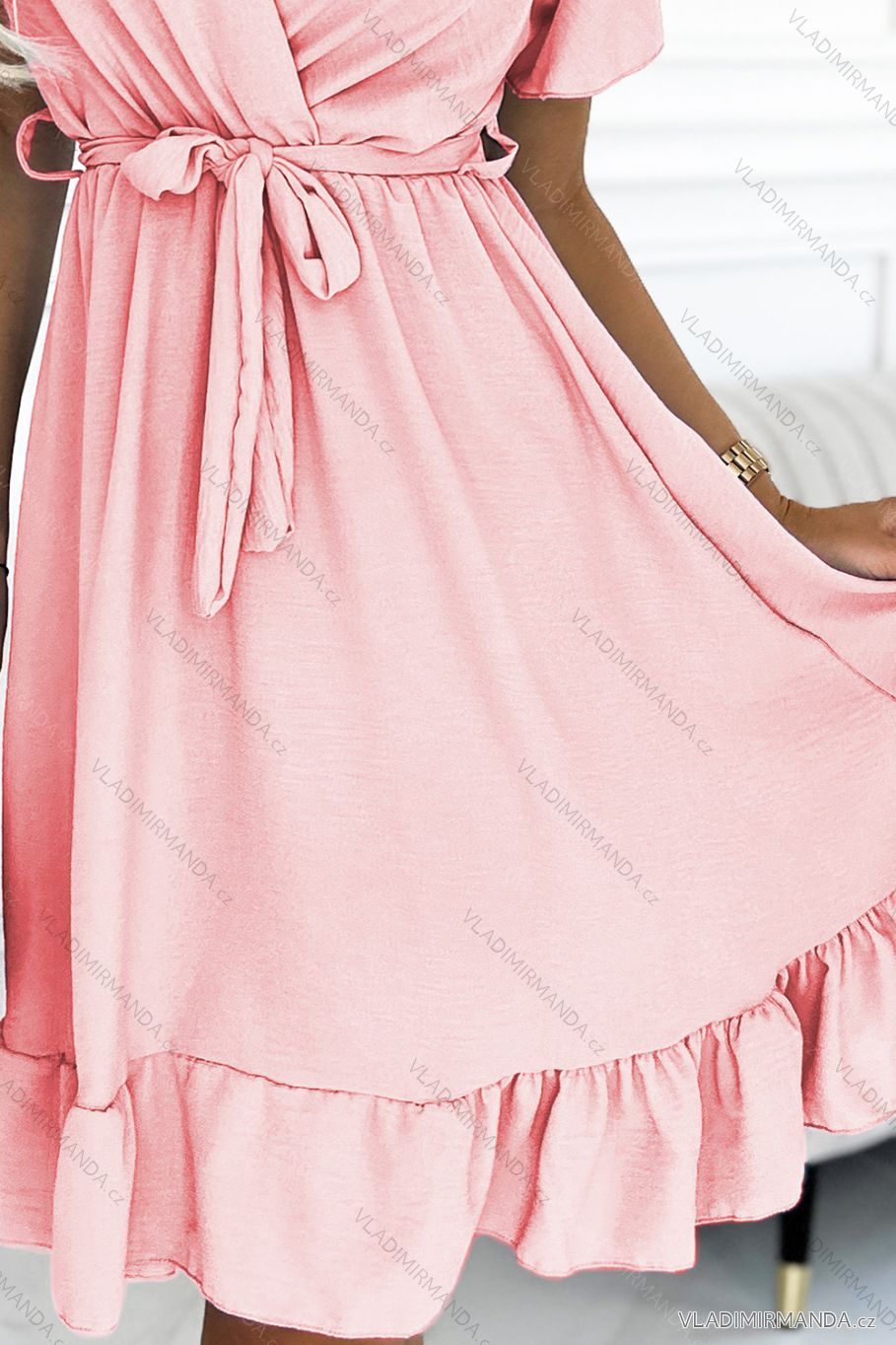 GOODS (119670) > Women's clothing (81050) > dress (30427) > dress elegant (8561) > Elegant short sleeve dress (2067) > 455-5 CORNELIA dress with frill, neckline and tie - pastel pink