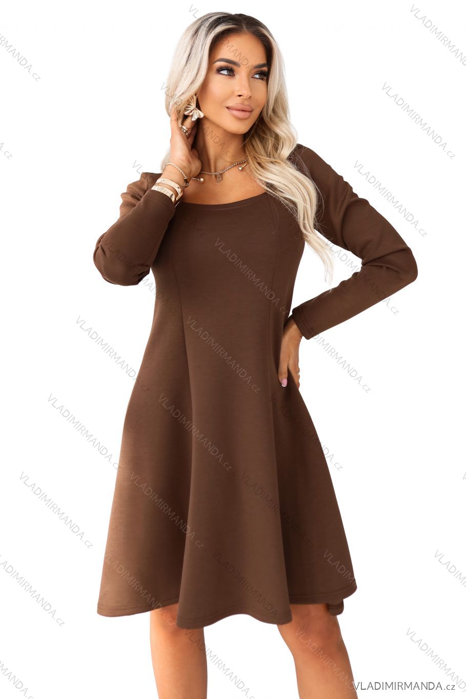 574-2 IVANA comfortable trapeze dress with a neckline and long sleeves - chocolate