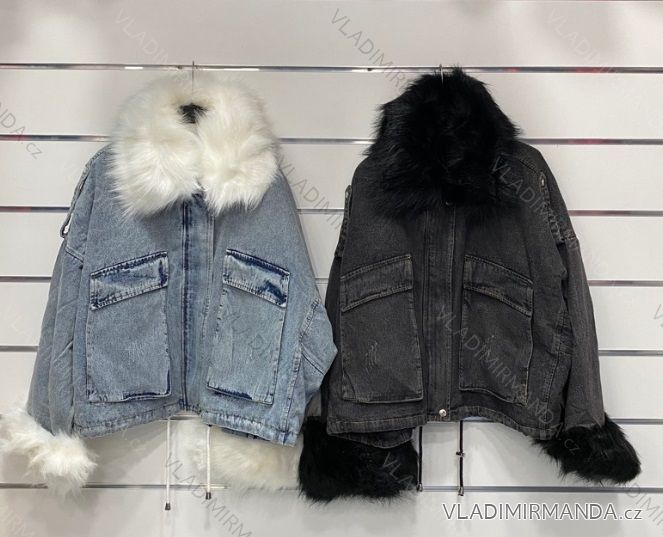 Bunda riflová zimní zateplená kožíškem dámská (S-M-L) K-ZELL FASHION KZE208387