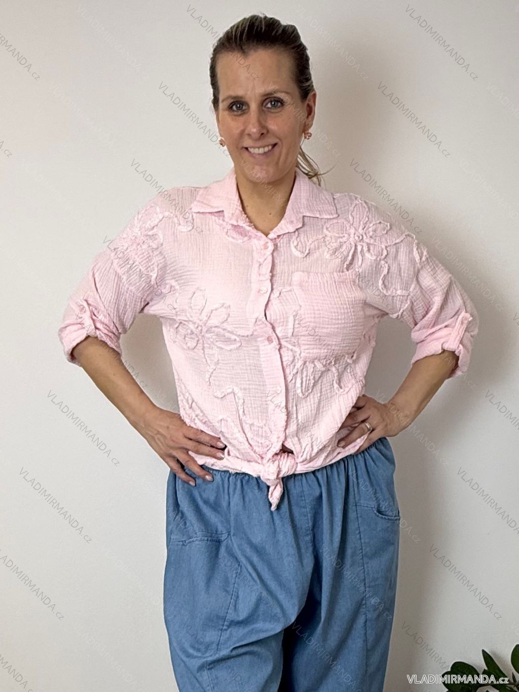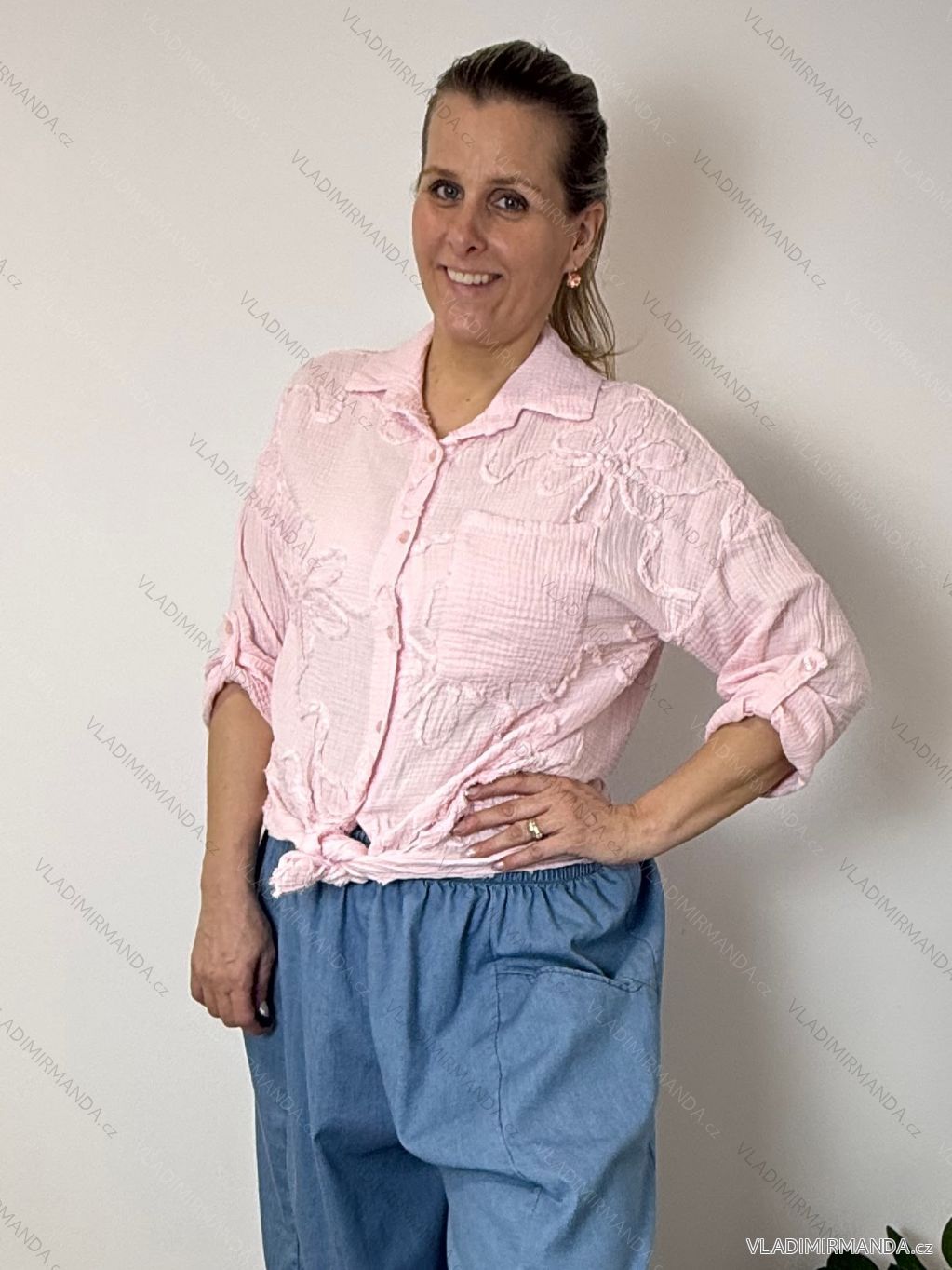 GOODS (120750) > Women's clothing (81833) > Shirts and blouses (3807) > Classic shirts (1500) > Classic 3/4 long sleeve shirt for women, oversized (50/52/54 ONE SIZE) ITALIAN FASHION IMWDL252349 S / M / L růžová světlá