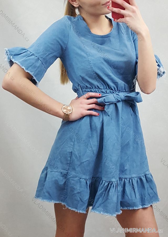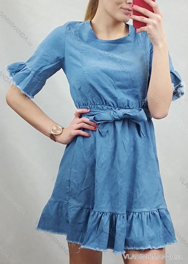 Denim short sleeve dress women (UNI S / M) ITALIAN FASHION IM920010