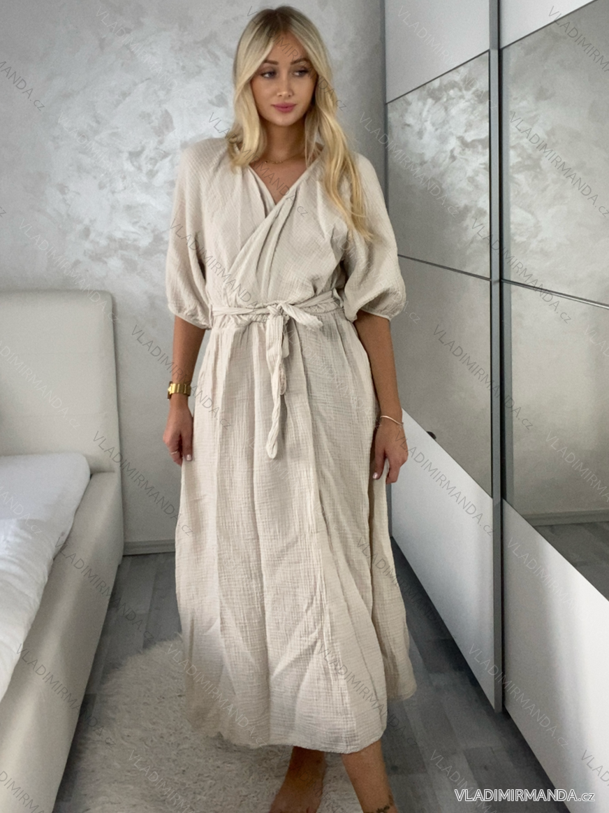 Dress oversize short sleeve womens (UNI S-L) ITALIAN FASHION IMD20187 M/L/XL beige