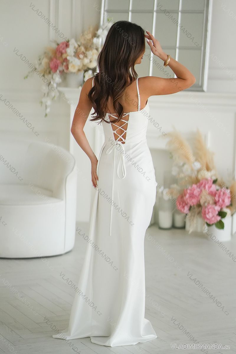 GOODS (120811) > Women's clothing (81893) > dress (30754) > Long maxi dress (8339) > Long maxi dress on hangers (2485) > Šaty elegantní společenské ecru s geometrickým výstřihem a odnímatelnými ramínky dámské (34-46) POLSKÁ MÓDA PMLBC24320-02 white 34