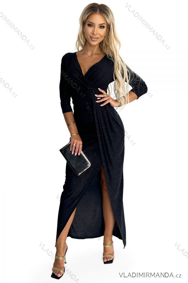 GOODS (120887) > Women's clothing (81955) > dress (30770) > Social dress (5033) > Ball gown long (3175) > Elegant party dress Shiny with neckline and slit on the leg (XS - XL) Polish fashion NMC-404-6/DR black L