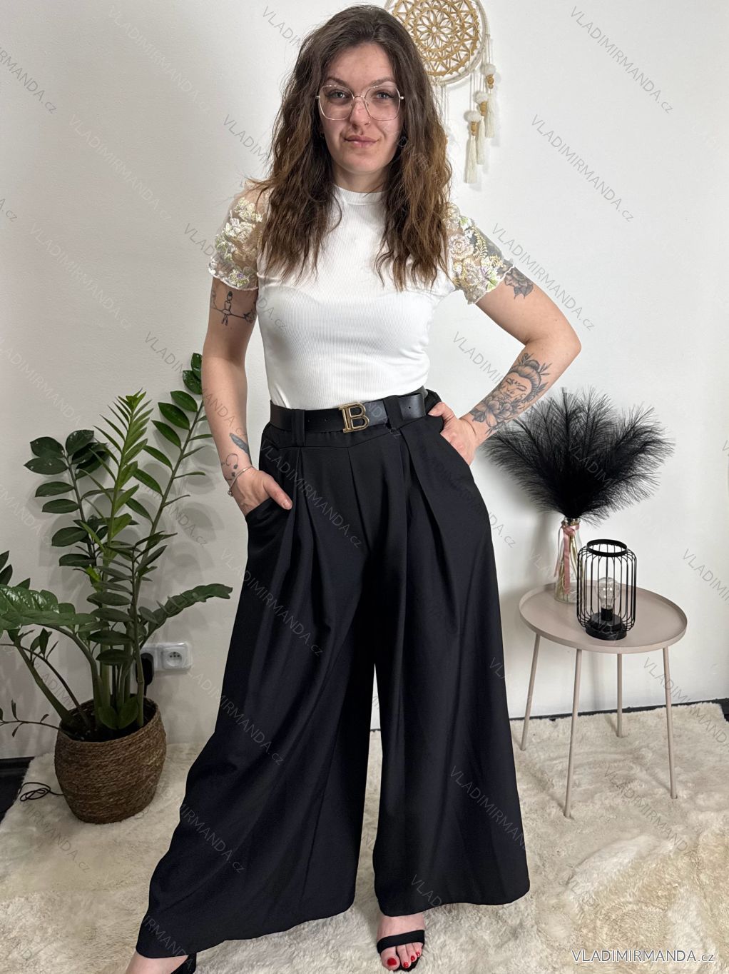 Elegant trousers with belt for women, oversized (44/46/48 ONE SIZE) ITALIAN FASHION IM425557