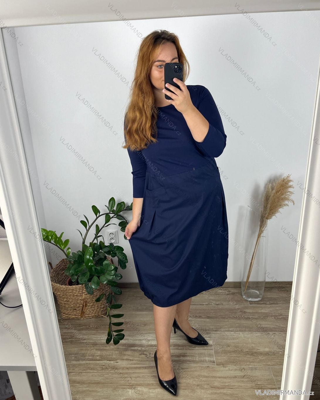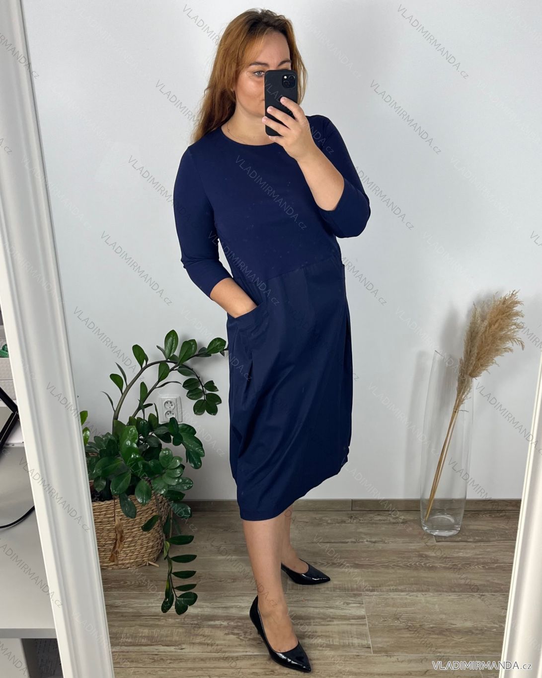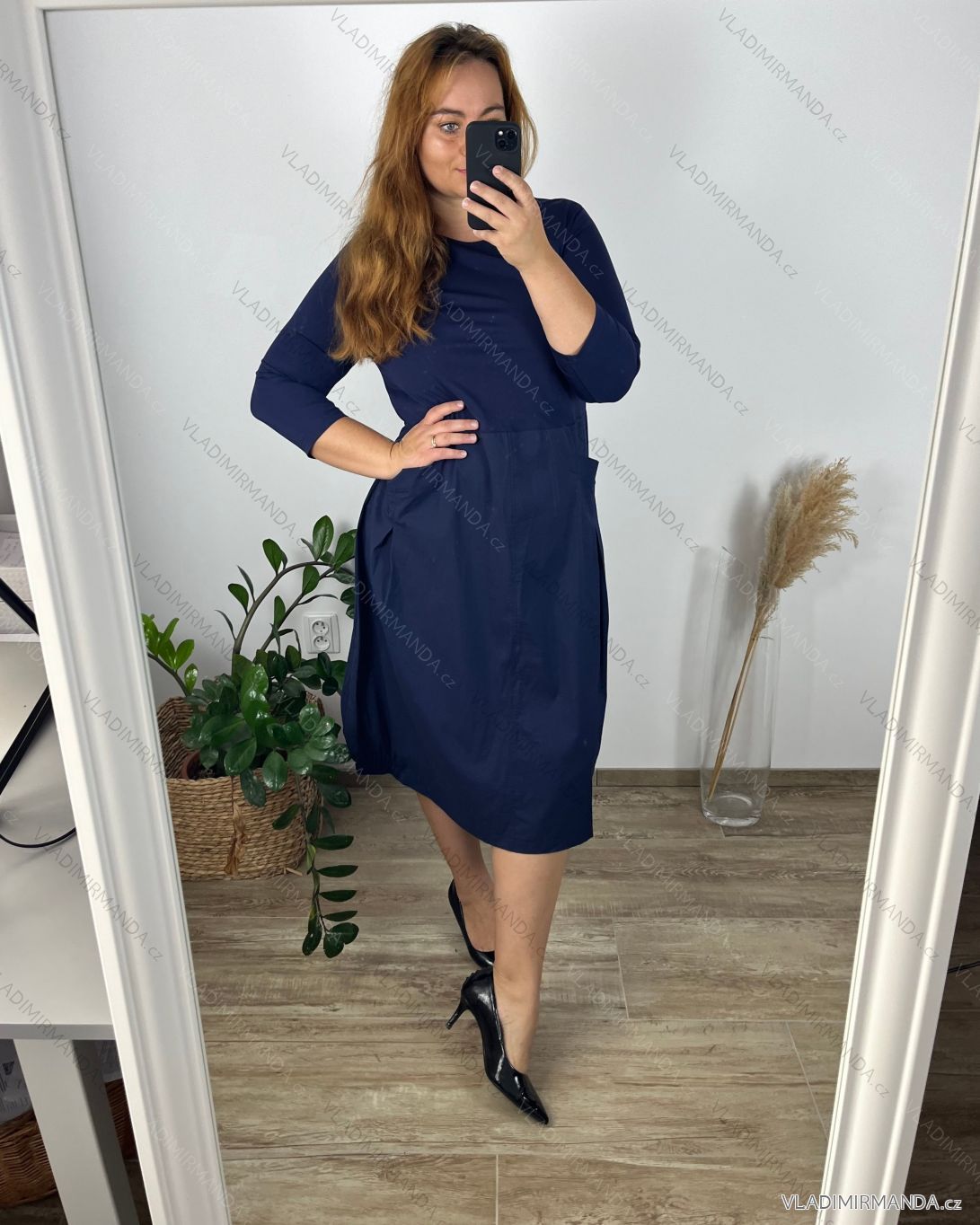 GOODS (120808) > Women's clothing (81890) > dress (30750) > Leisure dress cotton 3/4 sleeve women's plus size (40-50) POLISH FASHION PMF24MARGARITA/DUR dark. blue 44