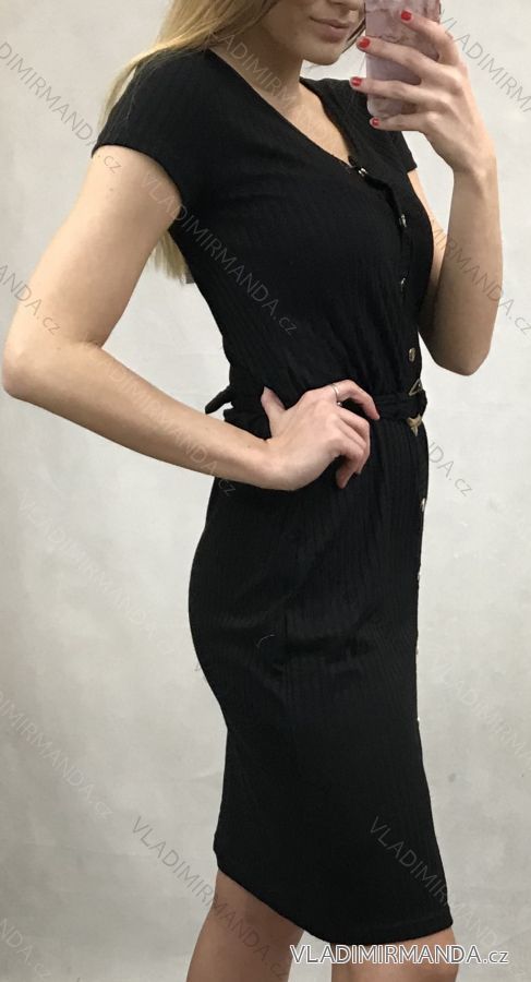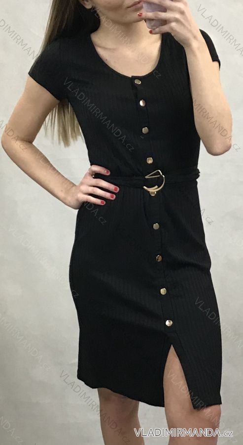 Line dress with button short sleeves women (uni s-m) ITALIAN FASHION IMT20C-038 M black