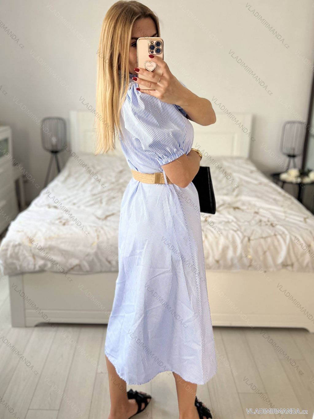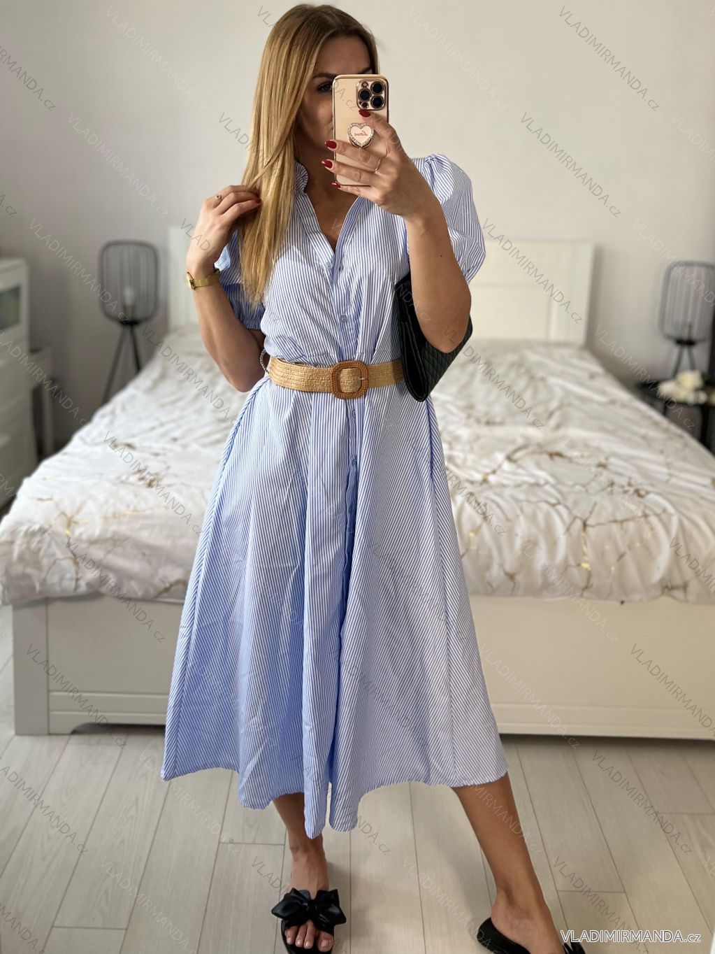 Linen Shirt Dress With Belt Short Sleeve Women's Stripe (S/M ONE SIZE) ITALIAN FASHION IMM23BR1985