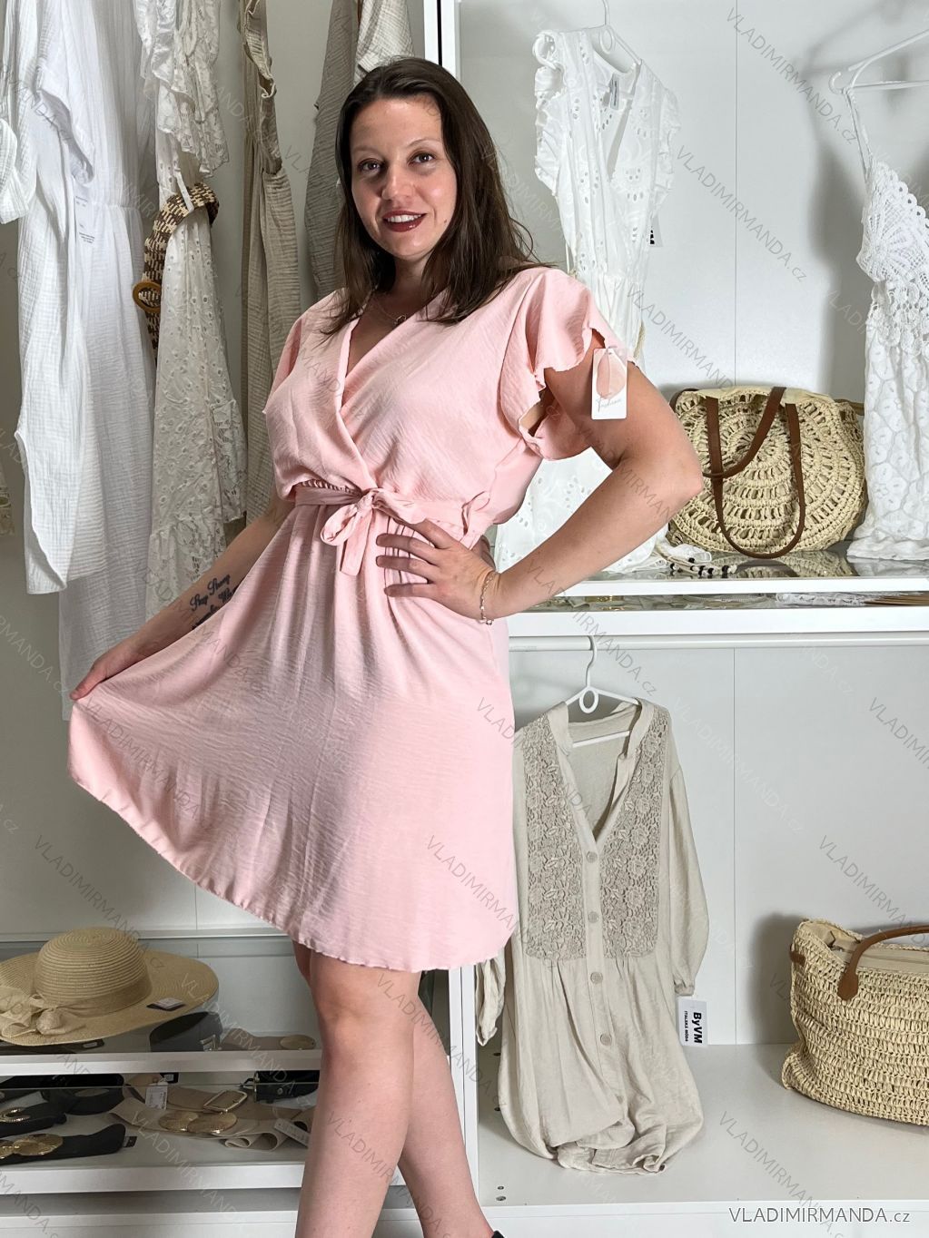GOODS (125128) > Women's clothing (81797) > dress (30893) > Short dress (1661) > Long casual short sleeve women's dress, oversized (42/44/46 ONE SIZE) ITALIAN FASHION IMD2525370 - růžová světlá - S / M / L