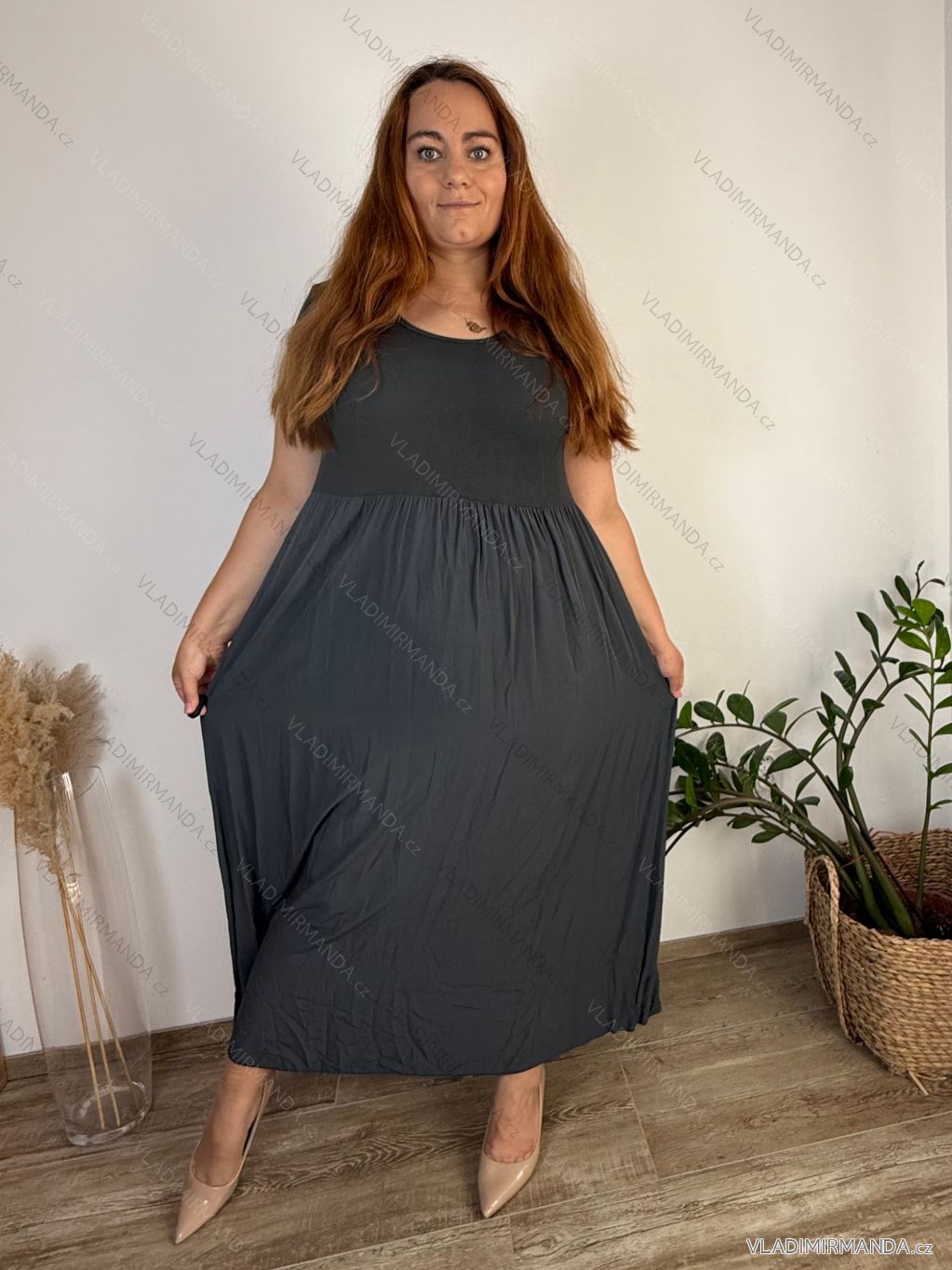 GOODS (125173) > Women's clothing (81833) > dress (30897) > Long maxi dress (8189) > Dress long maxi short sleeve (3158) > Long casual short sleeve women's dress, oversized (42/44/46 ONE SIZE) ITALIAN FASHION IMD2525370 - šedá tmavá -