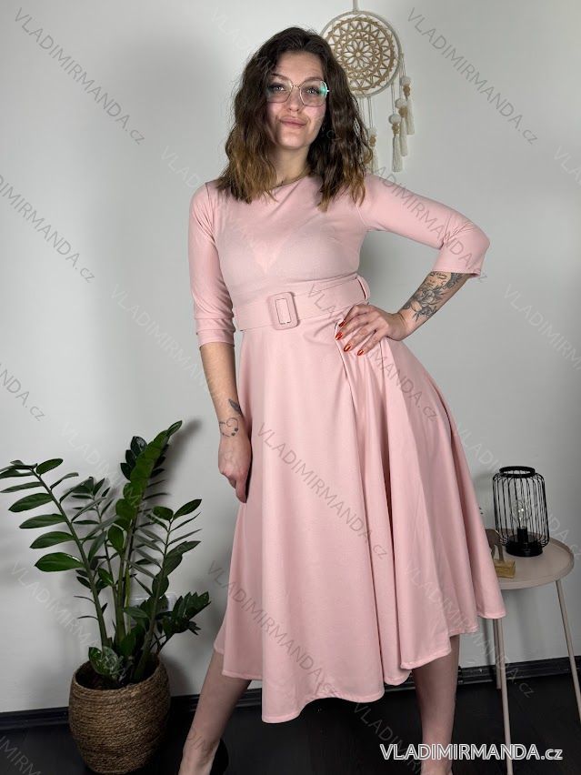 Long elegant dress with belt 3/4 long sleeves for women (S/M/L ONE SIZE) ITALIAN FASHION IM425008