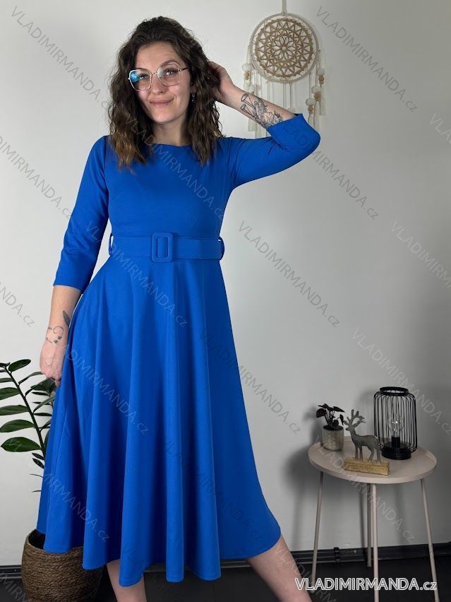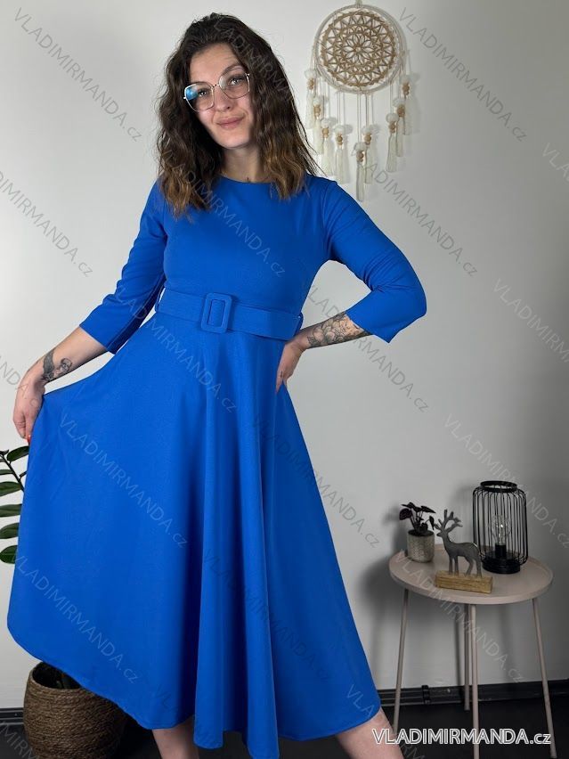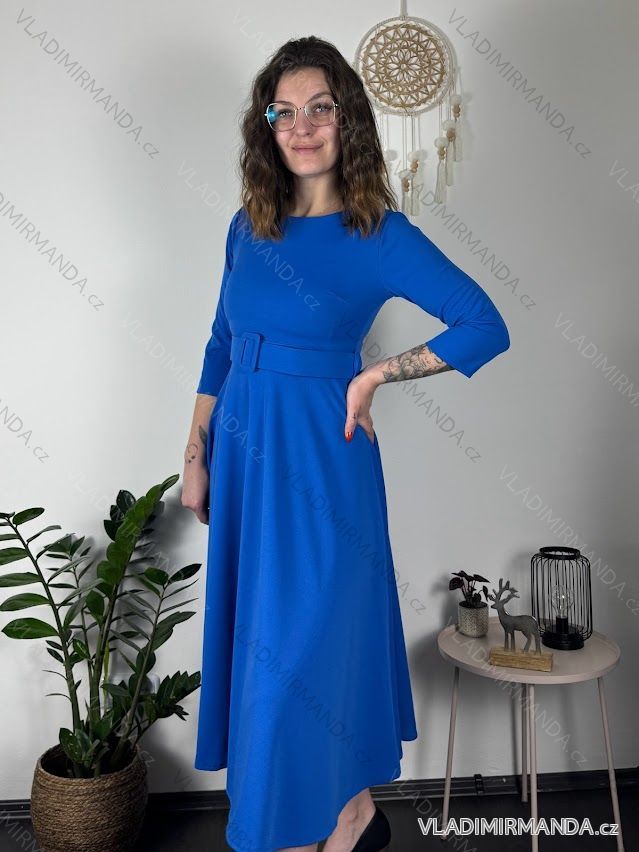 GOODS (121294) > Women's clothing (82018) > dress (30957) > Oversized XXL dress (4598) > (1561) > Long elegant dress with belt 3/4 long sleeves for women (S/M/L ONE SIZE) ITALIAN FASHION IM425008