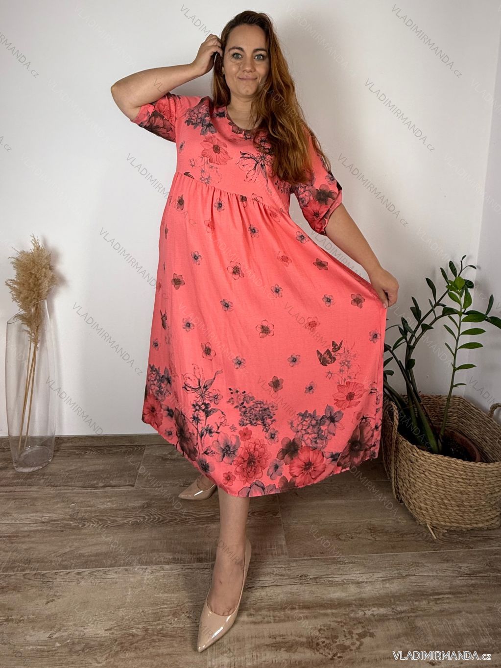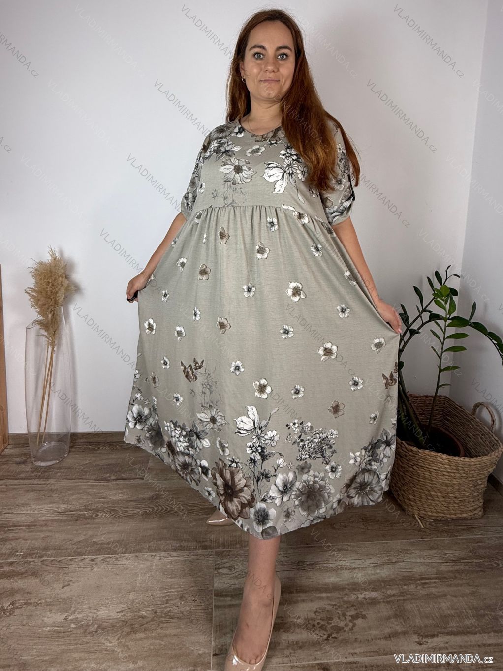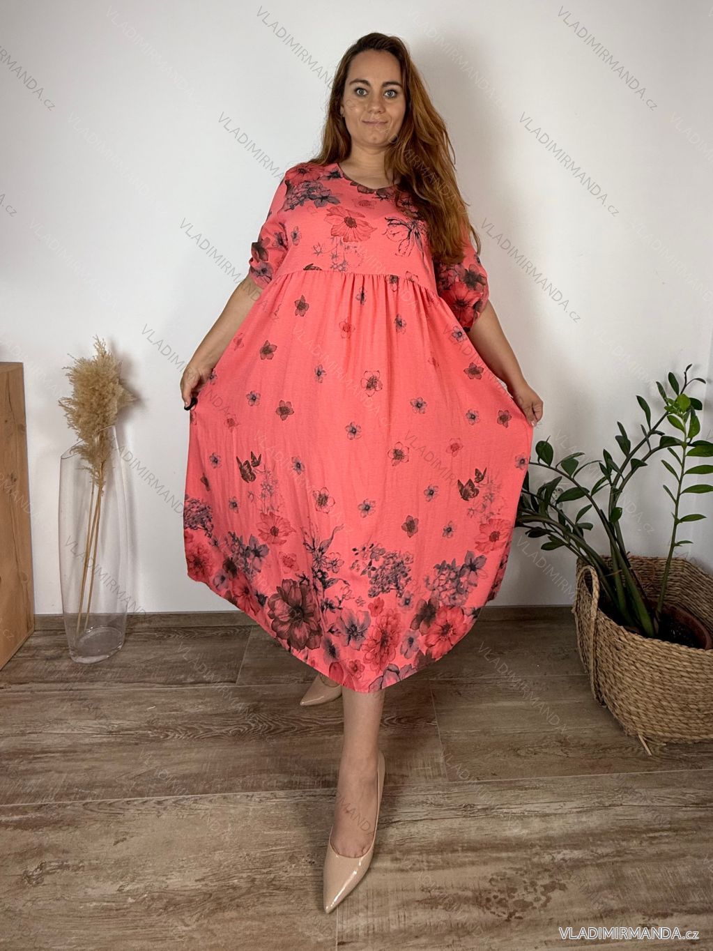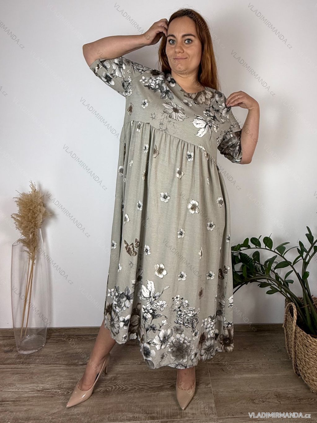 Long summer dress 3/4 long sleeve women's oversized (48/50/52 ONE SIZE) ITALIAN FASHION IM425172