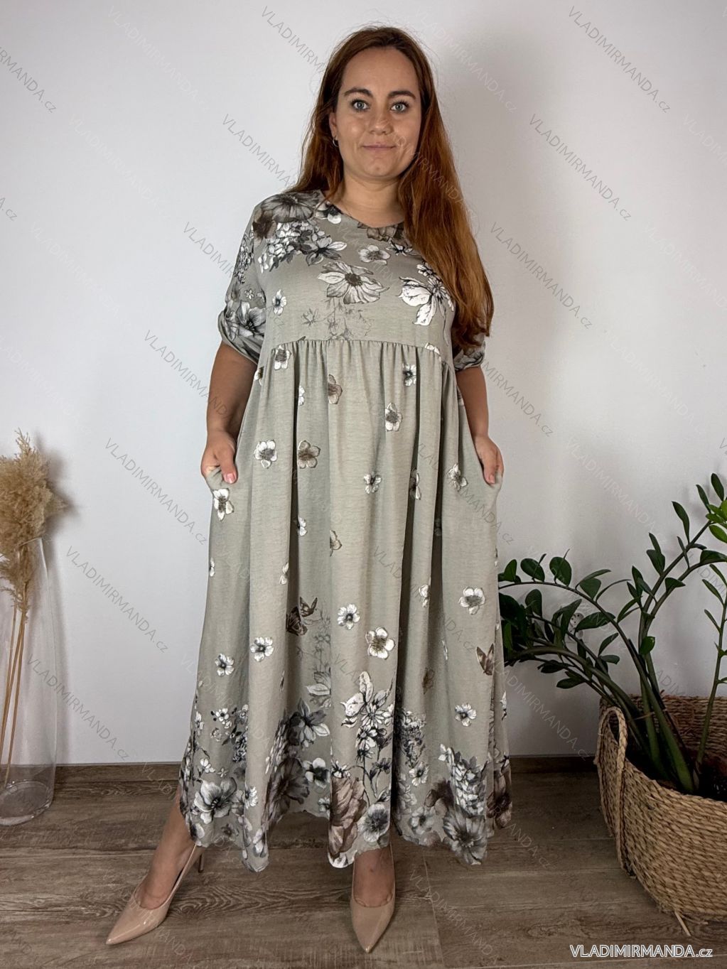 GOODS (120805) > Women's clothing (81891) > dress (30743) > Long maxi dress (8332) > Long maxi long sleeve dress (978) > Long summer dress 3/4 long sleeve women's oversized (48/50/52 ONE SIZE) ITALIAN FASHION IM425172