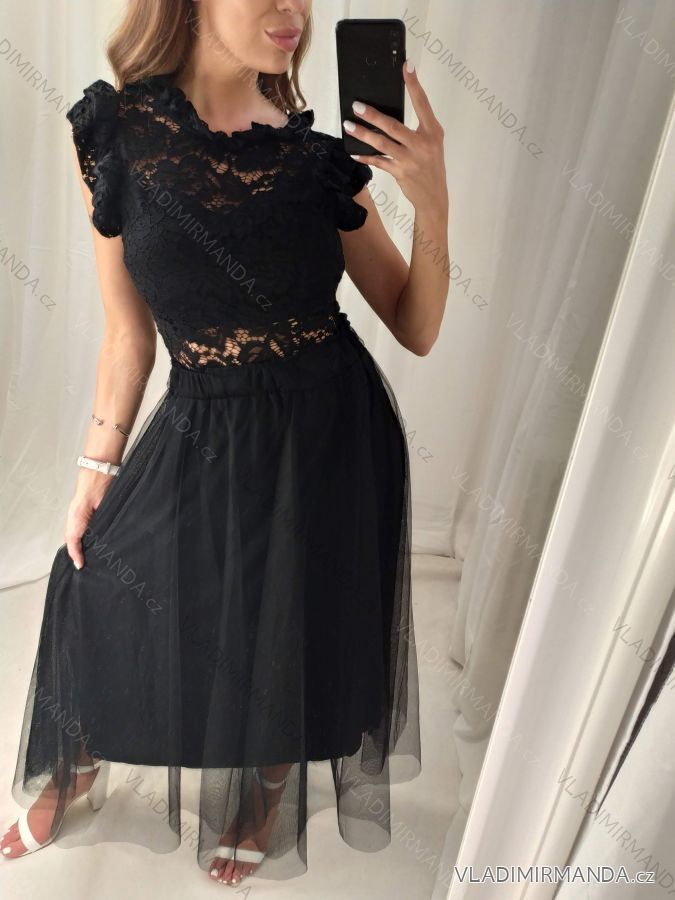 Sukně dlouhá tylová dámská se spodničkou, v pase na gumu, z polyesterového a viskózového materiálu, vhodná na společenské akce, svatby, večeře