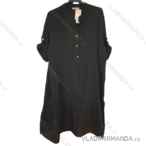 Oversize 3/4 Sleeve Women's Plus Size Shirt Dress (L/XL/2XL ONE SIZE) ITALIAN FASHION IM423111 XL/2XL black