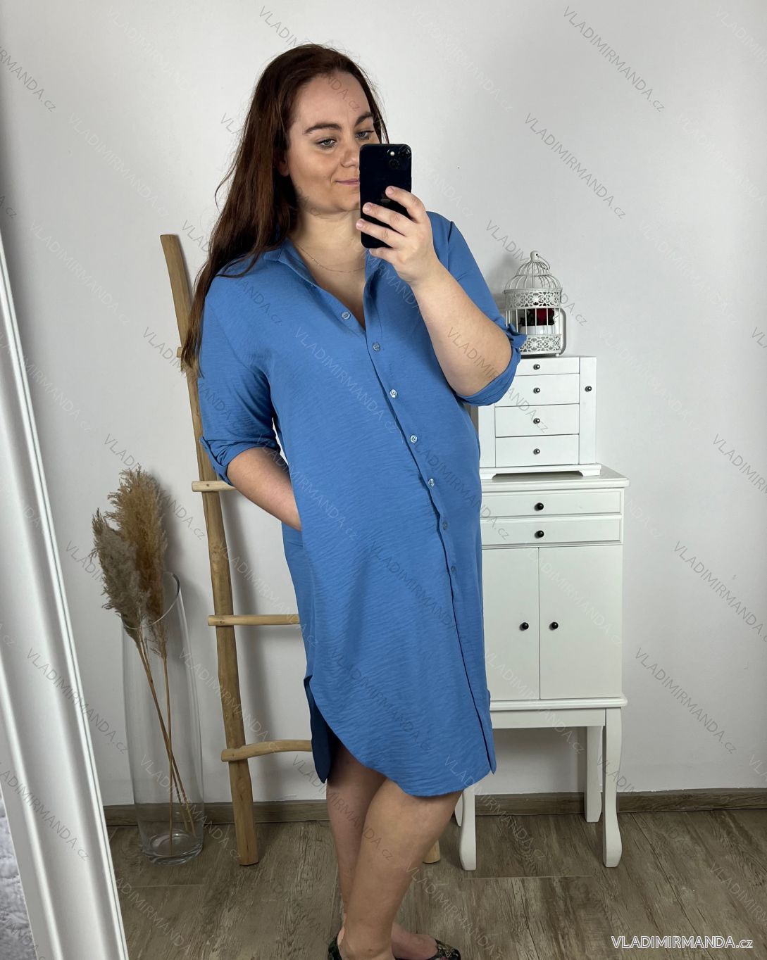 GOODS (120523) > Women's clothing (81890) > dress (30962) > Oversize 3/4 Sleeve Women's Plus Size Shirt Dress (L/XL/2XL ONE SIZE) ITALIAN FASHION IM423111