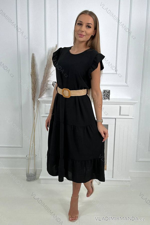 We present you a fashionable dress with a decorative belt. Dress with frills. The dress is made of high quality material. A very interesting proposition for all ladies. The size is universal and will be suitable for ladies wearing size S, M or L.