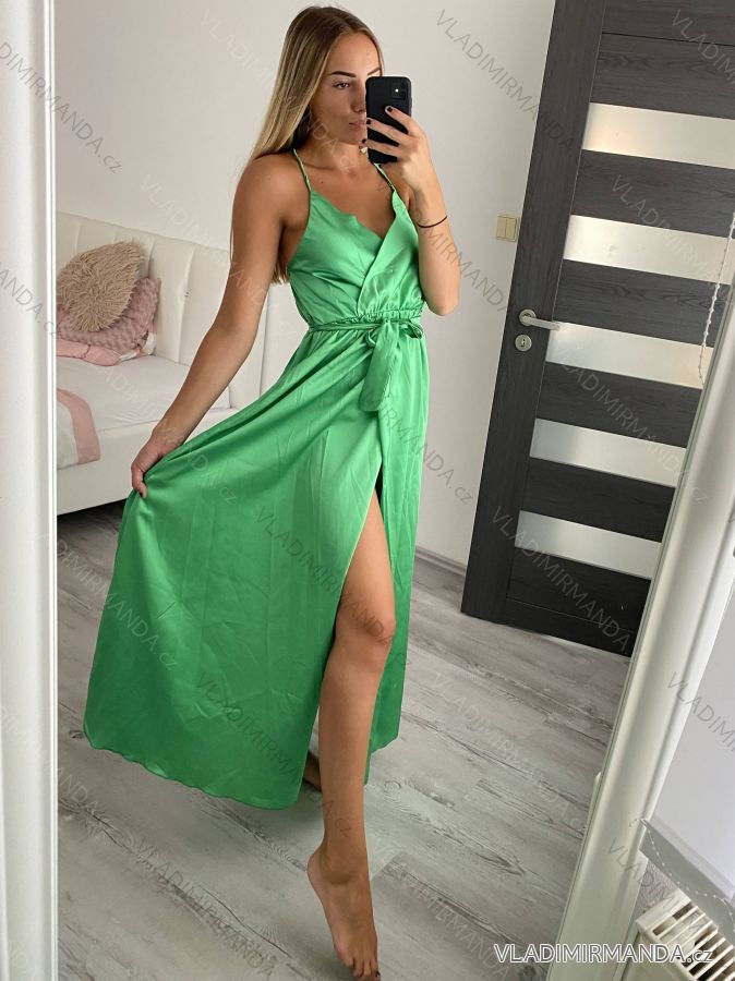 GOODS (120523) > Women's clothing (81892) > dress (30962) > Šaty dlouhé letní saténové na ramínka dámské (S/M ONE SIZE) ITALSKÁ MÓDA IMWB22079 S/M Green
