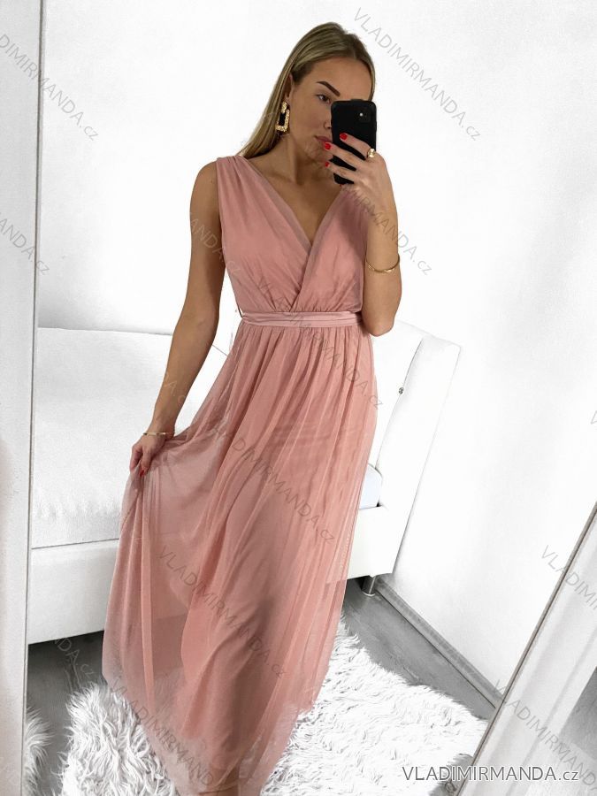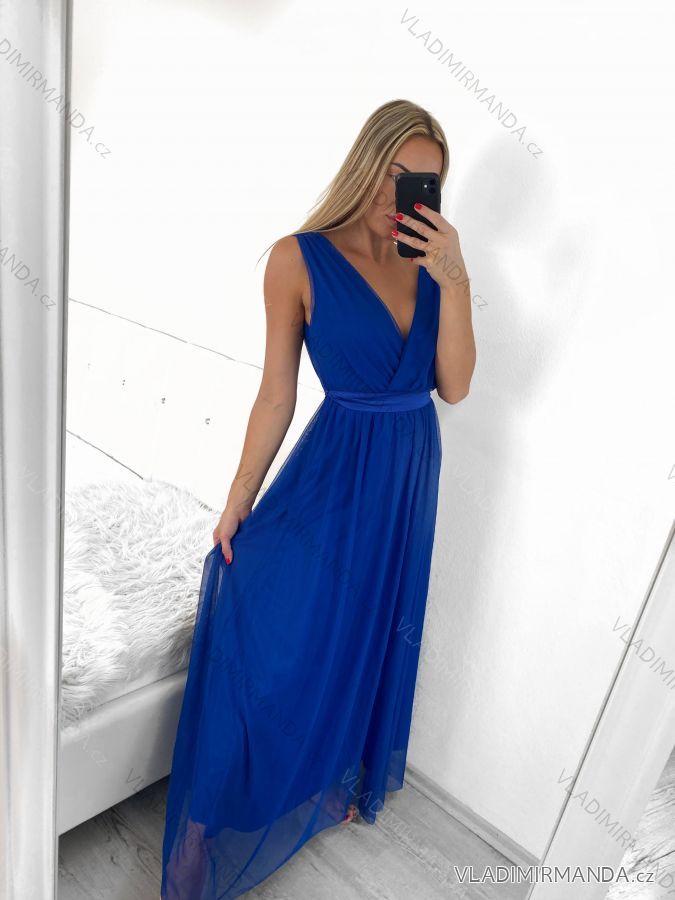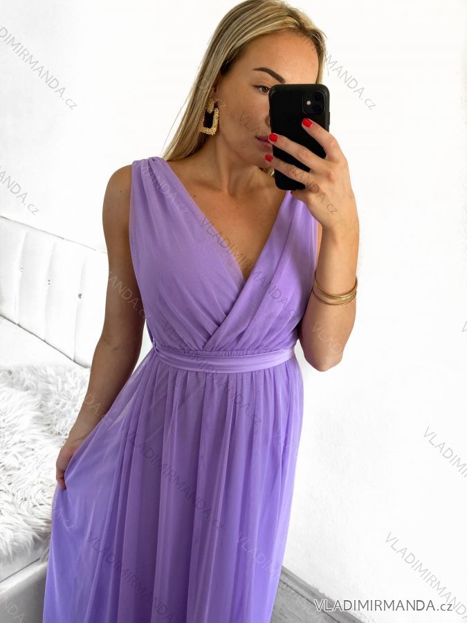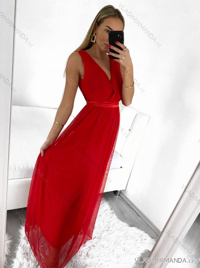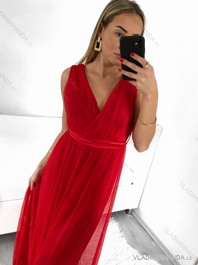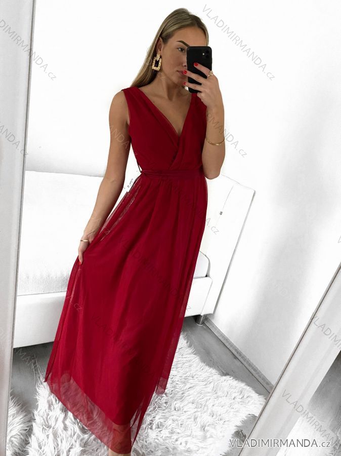 Šaty dlouhé společenské na ramínka dámské (S/M ONE SIZE) ITALSKÁ MÓDA IMPSH223677/DR S/M Wine