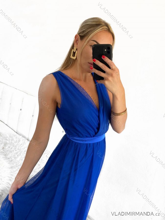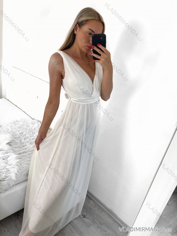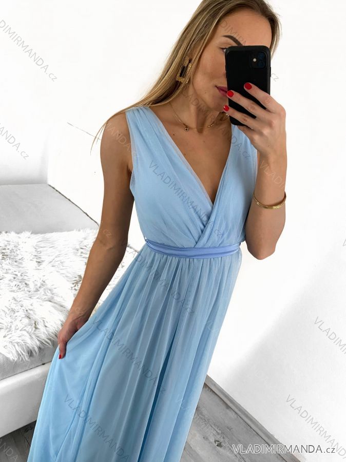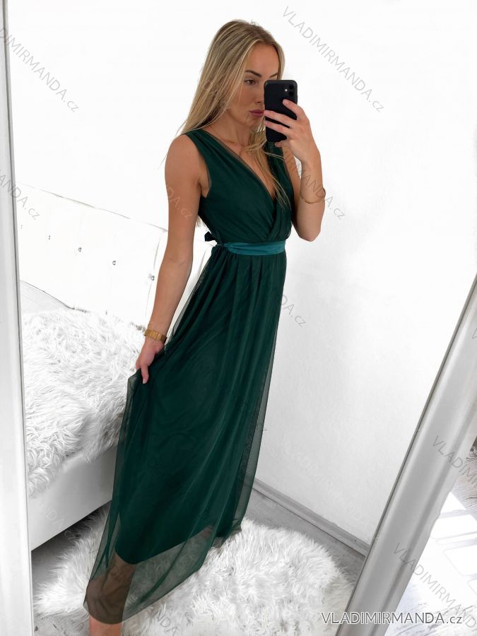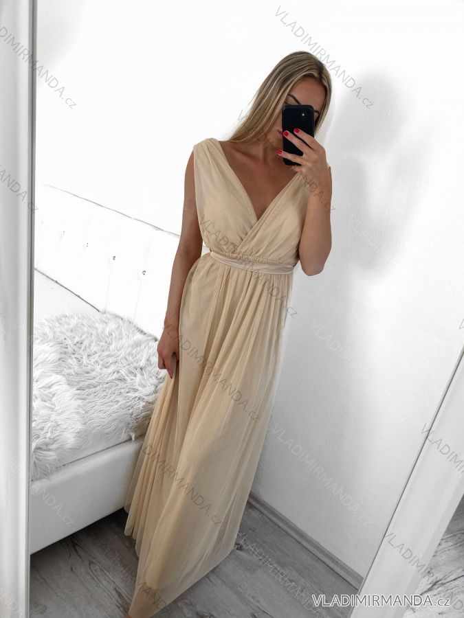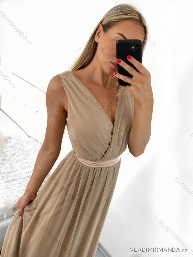 Šaty dlouhé společenské na ramínka dámské (S/M ONE SIZE) ITALSKÁ MÓDA IMPSH223677/DR S/M Wine