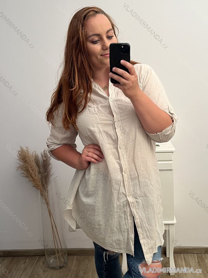 Šaty elegantní košilové dlouhý rukáv dámské (S/M ONE SIZE) ITALSKÁ MÓDA IMWY21734 2XL/3XL white
