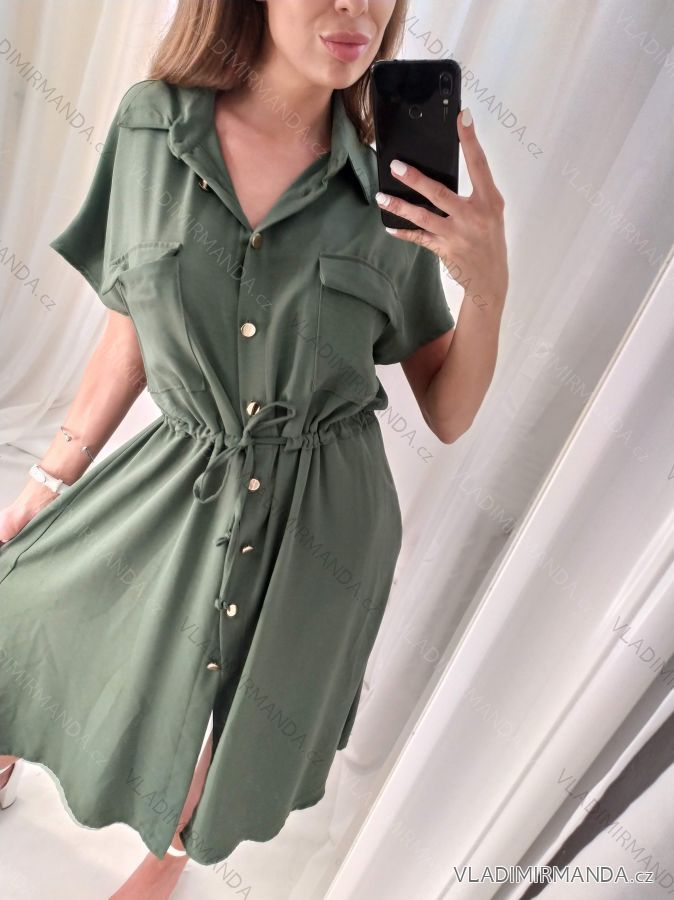 Šaty košilové krátký rukáv dámské, v pase je šňůrka, lehký materiál, z polyesteru, šaty vhodné na běžné nošení, ale i do práce,