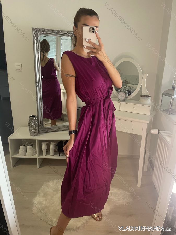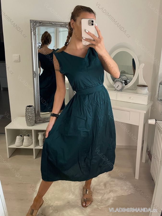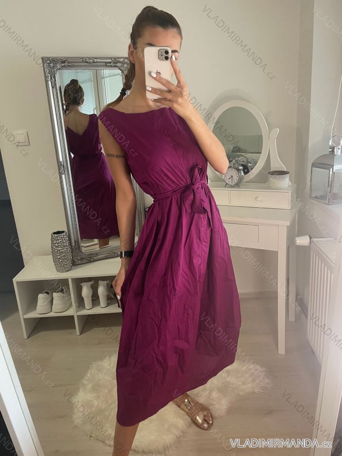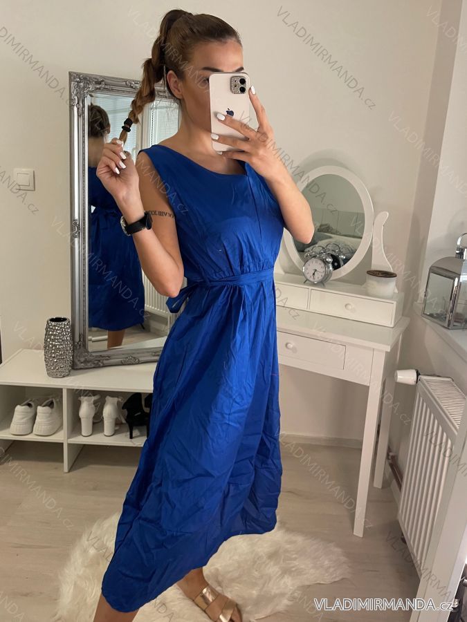 Šaty letní bez rukávu dámské, s páskem, z příjemného bavlněného matriálu