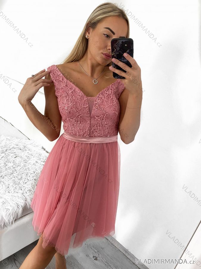 Women's strapless short party dress (S/M ONE SIZE) ITALIAN FASHION IMPSH24C612 pink salmon S/M