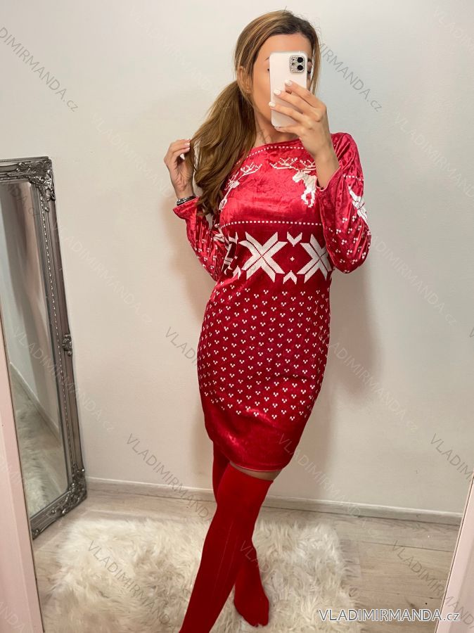 GOODS (125322) > Women's clothing (81949) > dress (30936) > Šaty sametové klasik vánoční dlouhý rukáv dámské (S/M ONE SIZE) ITALSKÁ MÓDA IMWB22382 white S/M