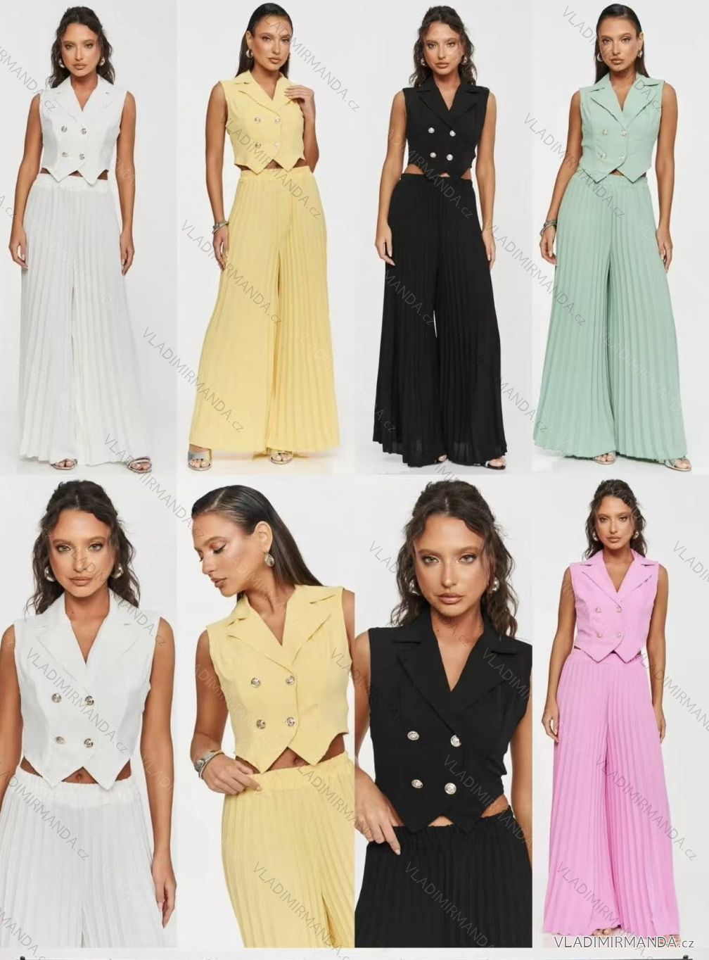 Set of elegant sleeveless vest and long pleated trousers for women (XS/S/M ONE SIZE) ITALIAN FASHION IMM25M41038