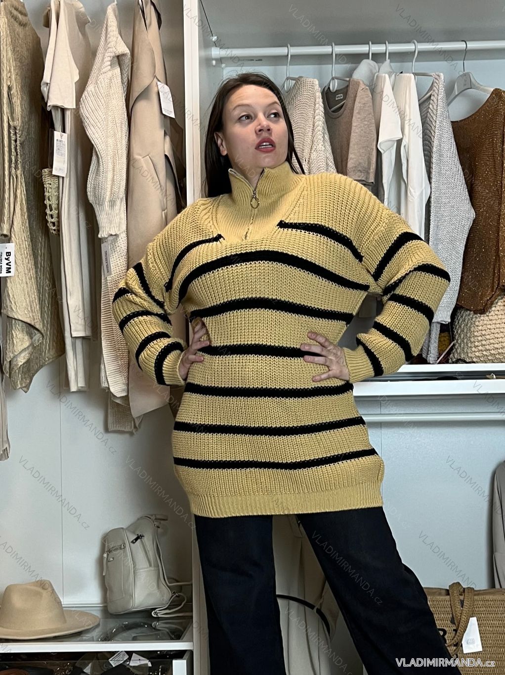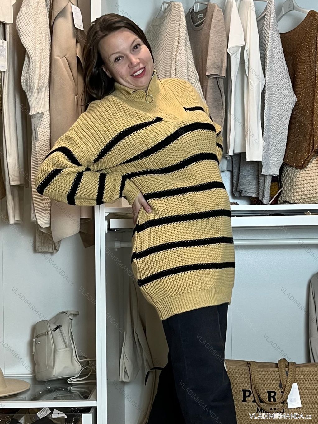 GOODS (120887) > Women's clothing (81955) > Sweaters and cardigans (4521) > Oversize sweater (377) > Shirt 3/4 sleeve ladies strip (4XL/5XL ONE SIZE) ITALSKÁ MÓDA IM422FLUFF M / L Dark beige