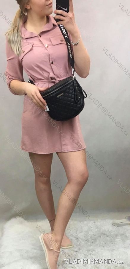 Shirt Dress with Belt 3/4 Long Sleeve Women (uni s / m) ITALIAN FASHION IM920106