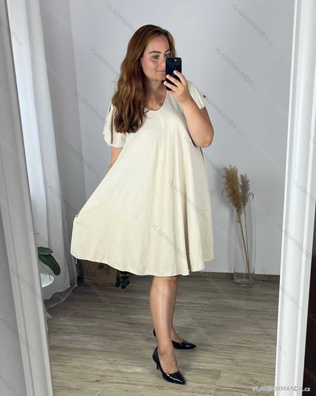 Short summer long sleeve women's dress, oversized (54/56/58 ONE SIZE) ITALIAN FASHION IM425070