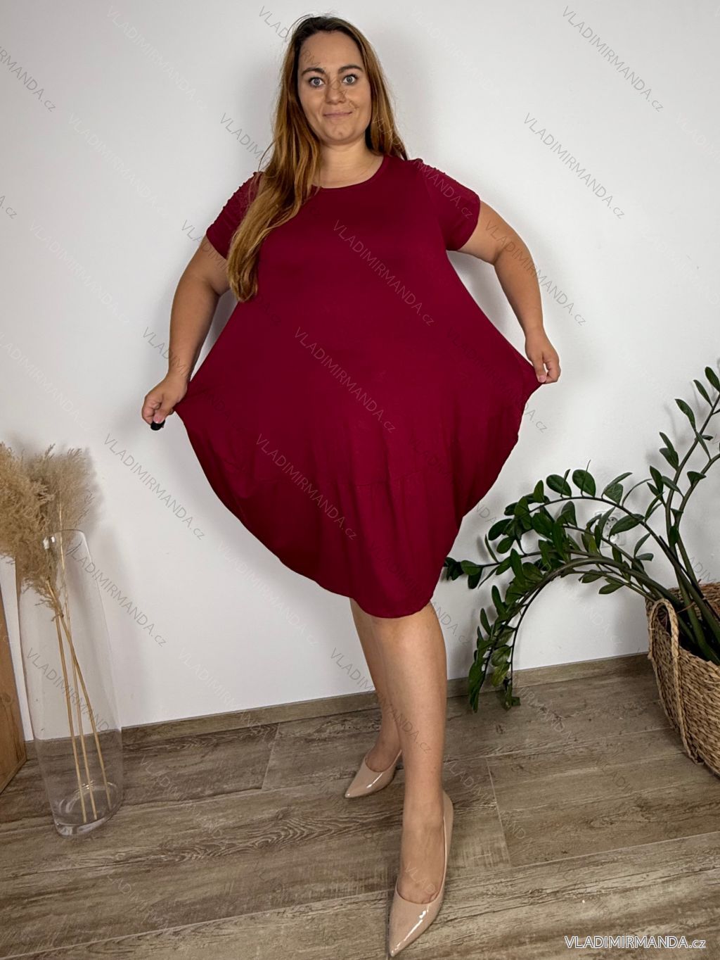 Summer dress oval short sleeve women's oversized (50/52/54 ONE SIZE) ITALIAN FASHION IM425011