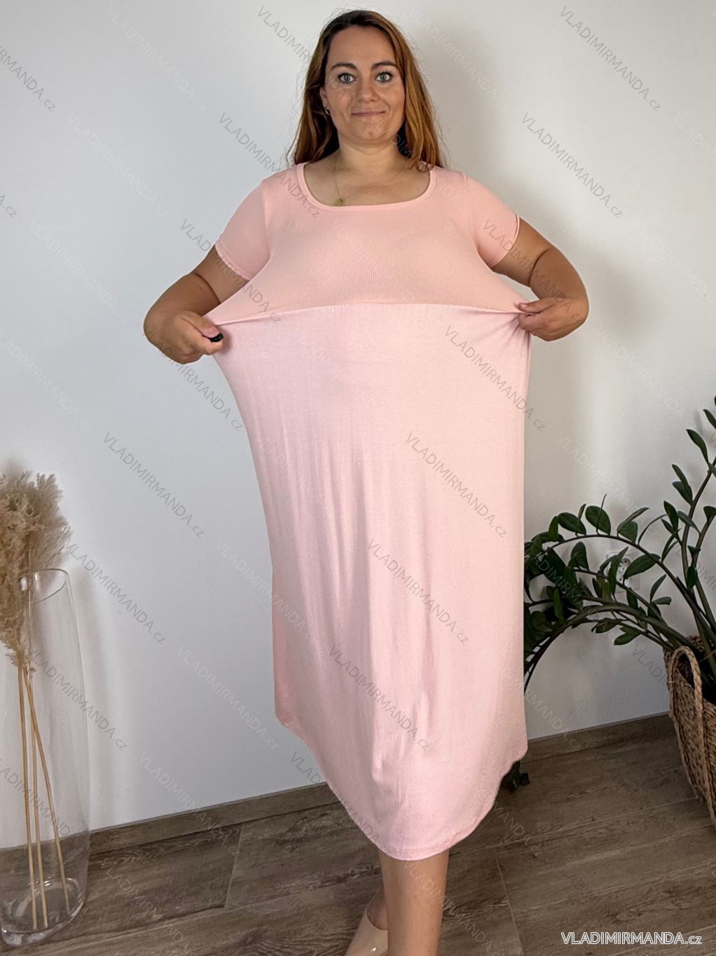 Summer dress oval short sleeve women's oversized (50/52/54 ONE SIZE) ITALIAN FASHION IM425011