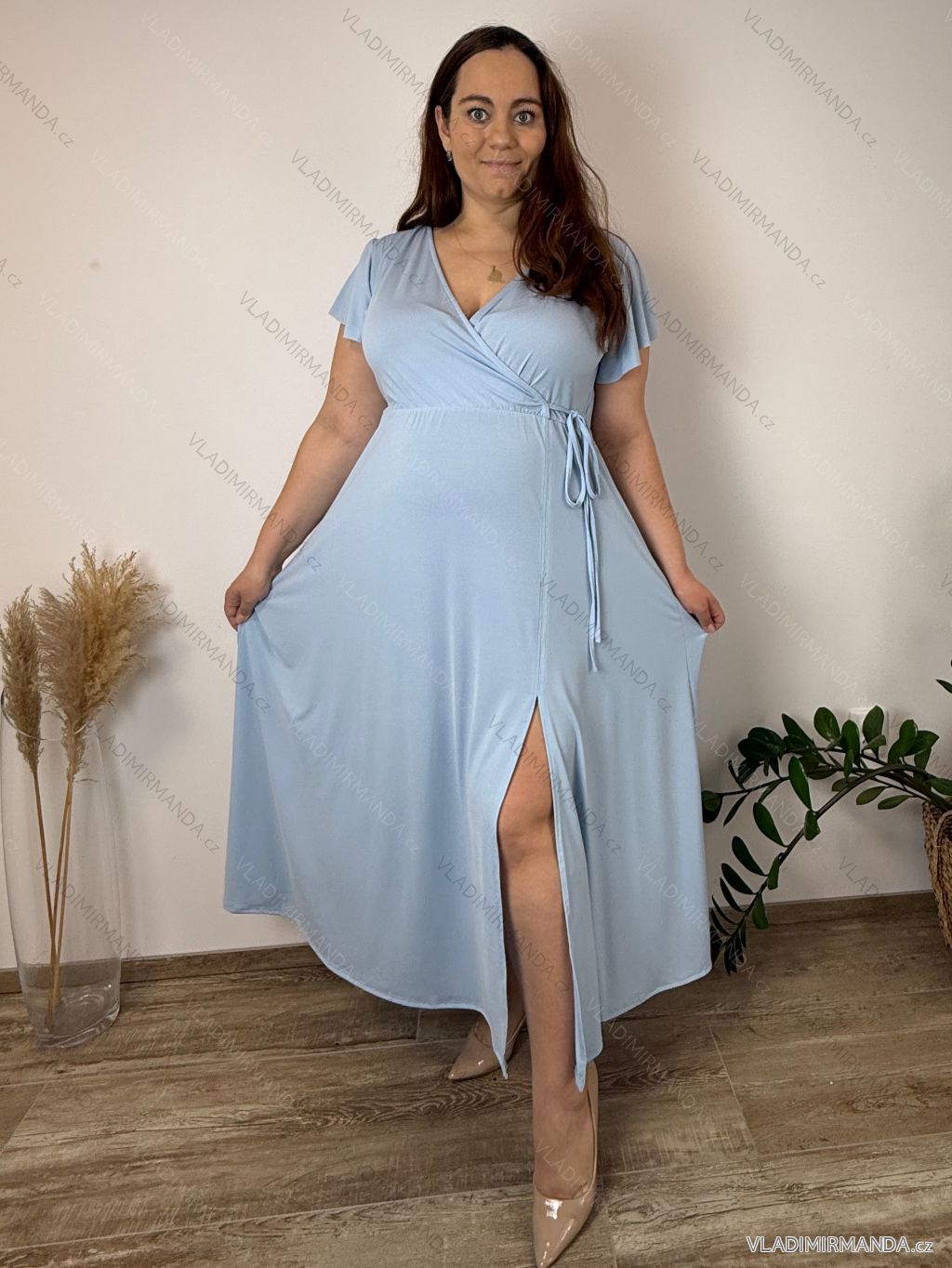 Summer dress oval short sleeve women's oversized (50/52/54 ONE SIZE) ITALIAN FASHION IM425011 46/48/50 Light blue