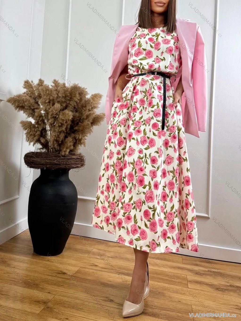 Summer floral dress with belt, sleeveless, women's oversized (S/M/L ONE SIZE) ITALIAN FASHION IMWGB25225